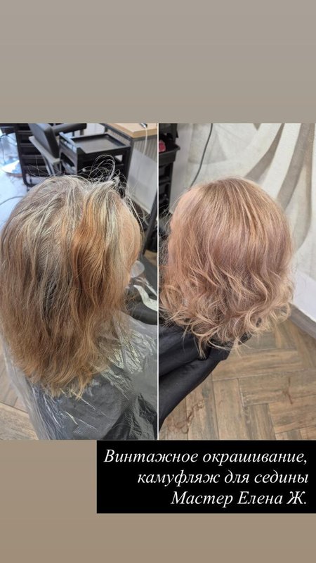 Моя мама осталась довольна услугами салона — стрижкой, покраской и укладкой. Она у меня привередливая, но здесь ей всё понравилось, хотя для меня это было неожиданно. Волосы у нее были ниже плеч, подстригли до плеч. Покрасили в светлый оттенок с тонированием, хорошо замаскировали седину и исправили последствия домашнего окрашивания. Всё сделали качественно, мама довольна.